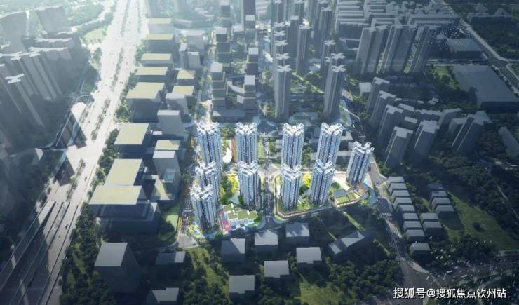 西区:占地2.2万㎡,容积率5.16,包含住宅、商业、幼儿园学校和其它基础配套设施。7栋、12栋总高47F,3T6户;8栋总高32F,2T5户;10栋、11栋总高32F,2T6户;9栋是幼儿园。