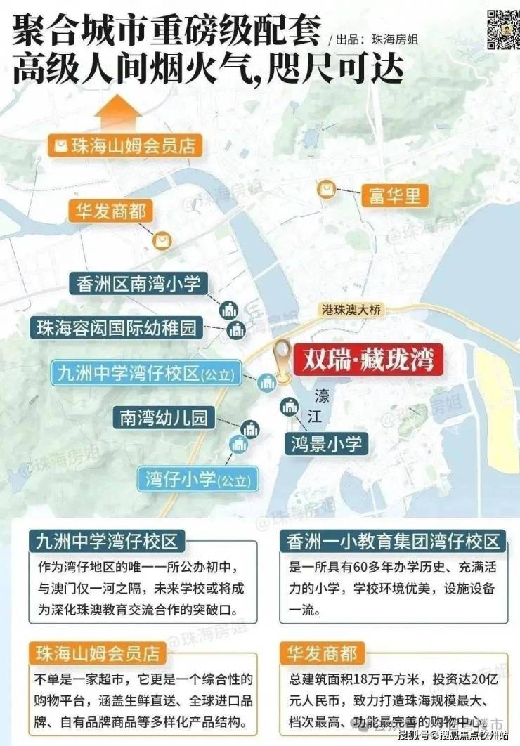 双瑞藏珑湾是位于珠海市湾仔沿海路188号的高端住宅项目,由双瑞集团开发,"雄踞珠海主城区,南连横琴对望澳门,双瑞藏珑湾坐拥港珠澳大桥黄金100米,尽享一线濠江景观与双省级名校资源,全球大师打造3D瀑布园林,75-143㎡臻品户型递减中。"