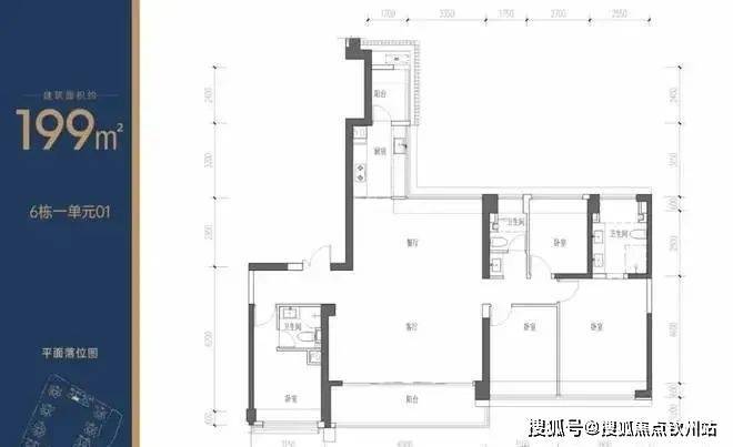 199㎡的4房2厅3卫,设计的是竖厅格局,2梯2户,专梯入户,独立入户玄关,LDKB一体化设计,客厅超大开间,四开间朝南,双主卧套间,客厅超大阳台看花园全貌景观,二字型厨房带1个生活阳台,公卫三段式分离,得房率约95%(包含赠送),正南朝向。