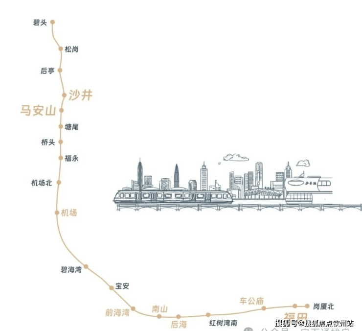 紧邻11号快线沙井站约700米,5站到机场,7站通宝安中心(从马安山出发),快速通达前海湾、后海总部基地、深湾总部基地、福田中心。