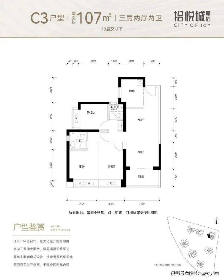 107平~三开间朝南设计,最大限度扩大室内采光面;创新户型布局,既保证了主卧的阔绰空间,也有pro max次卧,结构灵活百变,满足家庭不同阶段的不同需求;整体空间尺度大气舒适,为每位家庭成员提供了更多生活可能性。