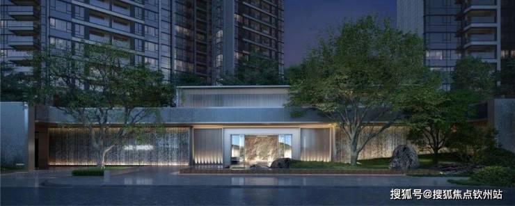 入口50米横向面宽,近6米的高跌水景墙与双层门楼让回家有了一份尊贵与隐奢;随着动线经过穿林,见山,伴水,来到模仿山石色调与铜色金属融合打造的酒店式大堂,一路草木清香、青石铺地、水系流动,自然的隐奢之美扑面而来。