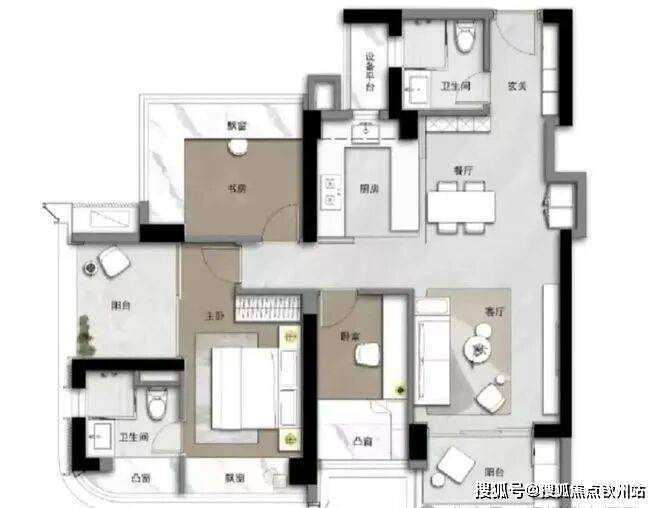 (4)126㎡4+1房2卫,折后总价约1257-1427万,正西朝向,客厅南北朝向,(摩登永恒,摩登中古,打造生活的多样化);
