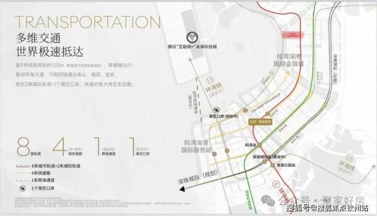 地理位置优越:项目西临妈湾二路,北临听海大道,东接前湾水廊道及河岸公园,南面步行约450米可达地铁5号线妈湾站,交通便利。