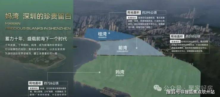 妈湾拥有山海合一资源,背靠大小南山,对望腾讯科技城,生态资源丰富。面积726.5公顷,容积率1.28-1.48,是低密生态豪宅住宅区的理想选择。官方策略是先建设配套、发展人才,再建房,促进妈湾与前湾、桂湾的协调发展。