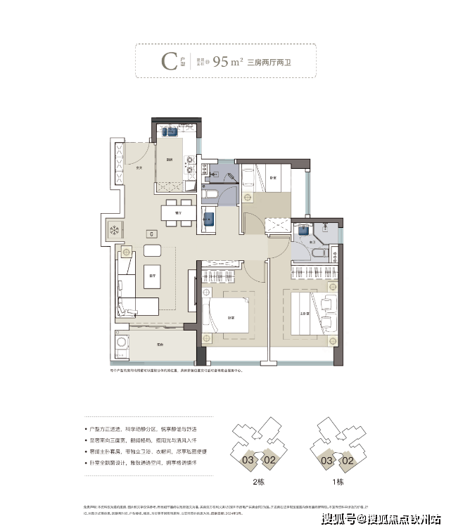 75㎡ 3房1卫,124套,适合刚需上车;95㎡ 3房2卫,186套,主力户型,三口之家改善首选;120㎡ 4房2卫,62套,拥有6.7米超大阳台空间尺度,奢阔居住品质的代表大家族一步到位。