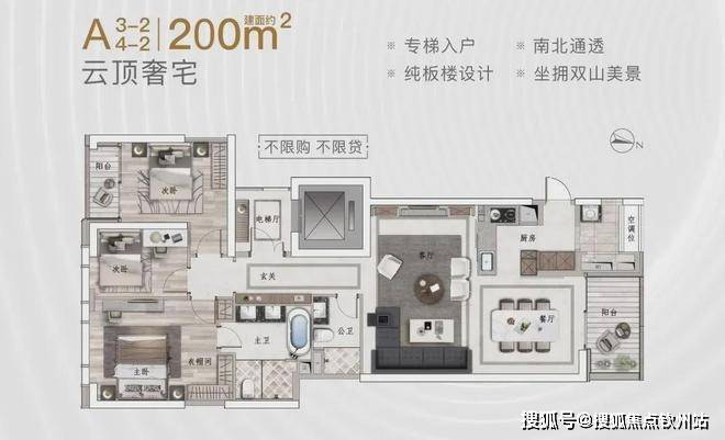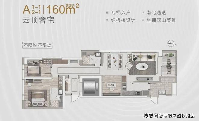 160-220㎡ 2-3+1房(专梯入户)