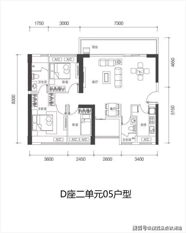 (2)03/05户型85㎡𝟑房,折后总价𝟲𝟱𝟬-𝟲𝟖𝟎万,单价7.6-8.0万/㎡;