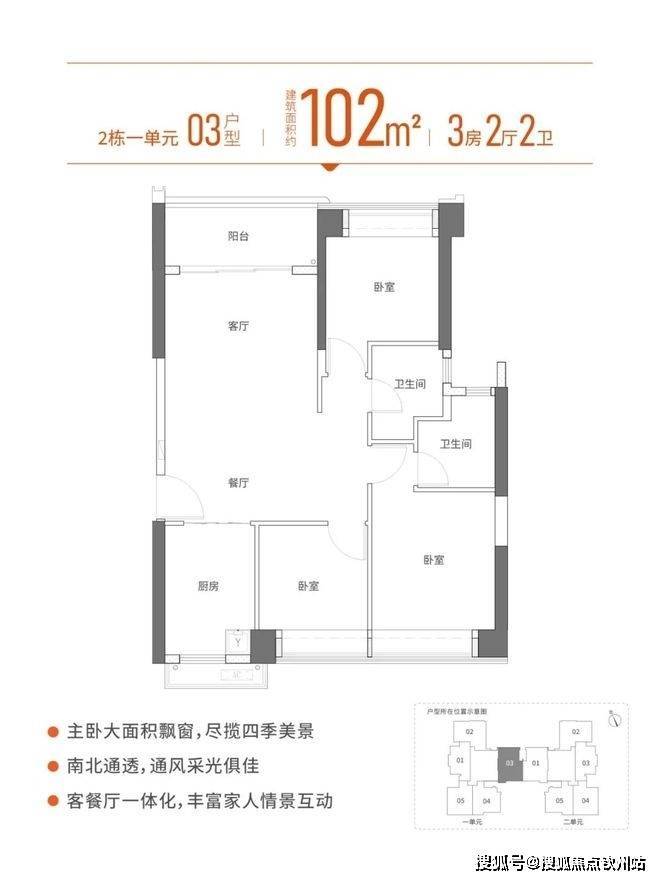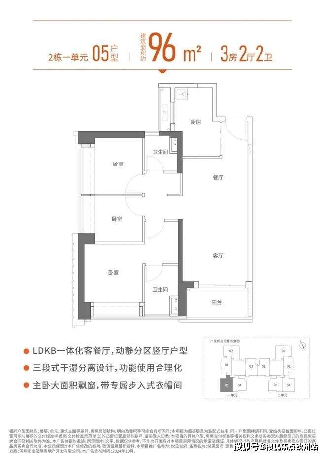 龙华清湖,宏发悦见倾湖誉府于2024年10月25日取证入市,本次将推出2栋1/2单元,共386套房源,面积有88㎡的3房1卫,96-99-102㎡的3房2卫户型