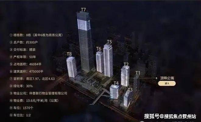 南区分为:T5、T6、T8公寓,T7为环球商务中心。