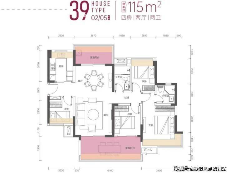 115㎡四房两卫(36、38、39栋户型基本一致)