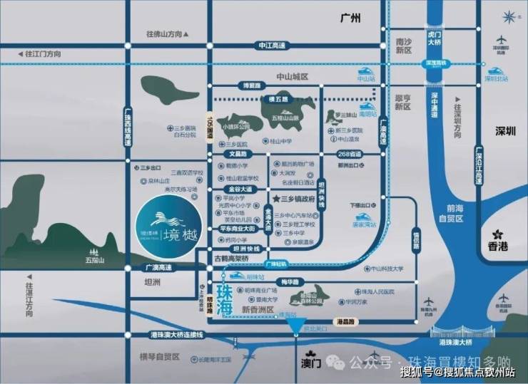 2、深中通道工程的不斷推進,中山將成爲承接深圳乃至香港産業轉移的“橋頭堡”; 三鄉毗鄰珠海,位于珠中江城市半小時生活圈和珠三角一小時生活圈內;