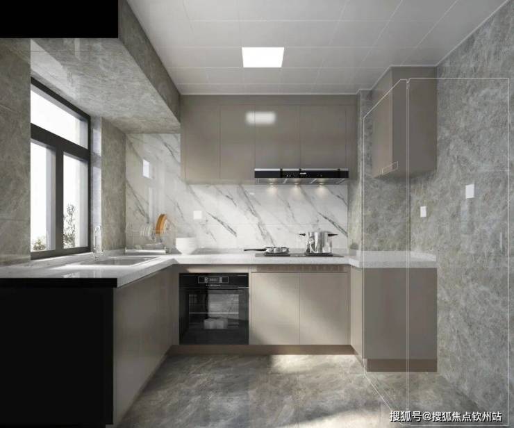 餐厅与客厅一体,美食美景妙趣横生!U型厨房,超大空间,涤、烹、储一体化。