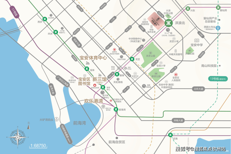 项目紧邻地铁5号线洪浪北站、主干道—宝安黄金发展中轴创业二路,近107国道,与深圳宝安国际机场直线距离约11公里,链接万象都会生活