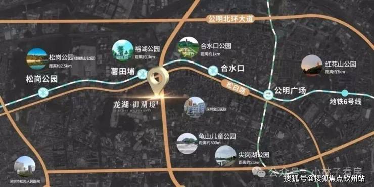 龙湖御湖境距离6号地铁线“薯田埔站”约300米,2站可到公明广场站换乘13号线,直达石岩,南山,3站可到松岗站换乘11号线,直达宝安,南山,前海。