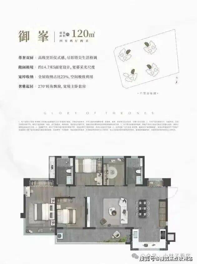 设计的是横厅南北通透格局,客餐厅开间8米,约14.7米超幕视野,超长阳台,主卧转角270°大飘窗,U型厨房,得房率:78.99%(不含赠送),阳台主朝西南或东南向。