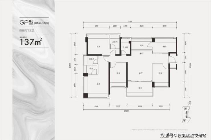 项目户型:108/137㎡奢阔四房