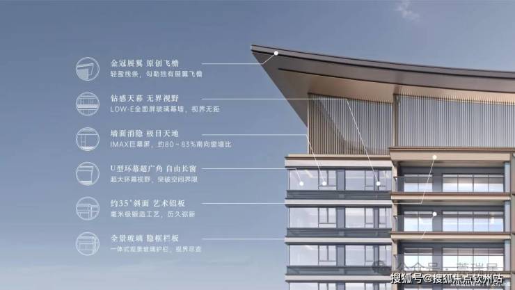 ▻南向超80%窗墙比丨▻大面双层LOW-E玻璃丨▻35°斜切香槟金铝板