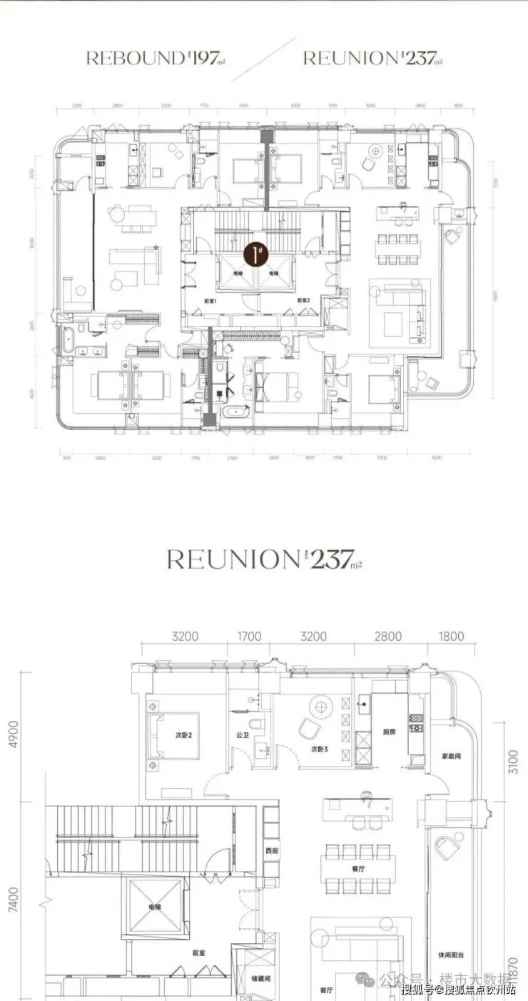 :建面约186-247㎡精装大平层,主打 T2/T3 楼型,专梯专户设计,四房三卫布局,南北通透。