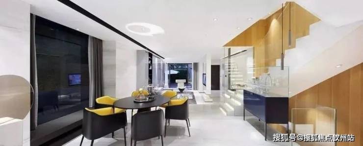 样板房一楼以黑、白、灰为基调,用黄色加以点缀,极简的冷淡融合了黄的温暖,在保持简洁的同时,又不失温馨。