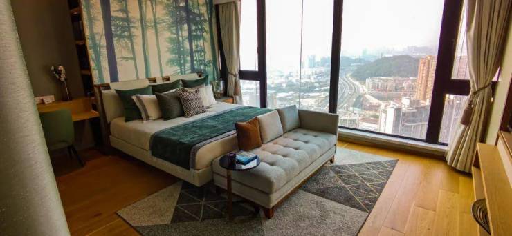 主卧5.25米的开间,搭配大面积落地玻璃所带来的无遮挡视野,尊贵感十足。