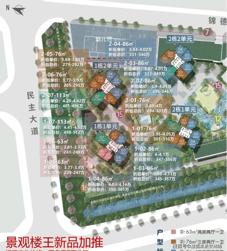 户型:建面约63㎡两房一卫/约76㎡三房一卫/约86㎡三房两卫/约112㎡四房两卫