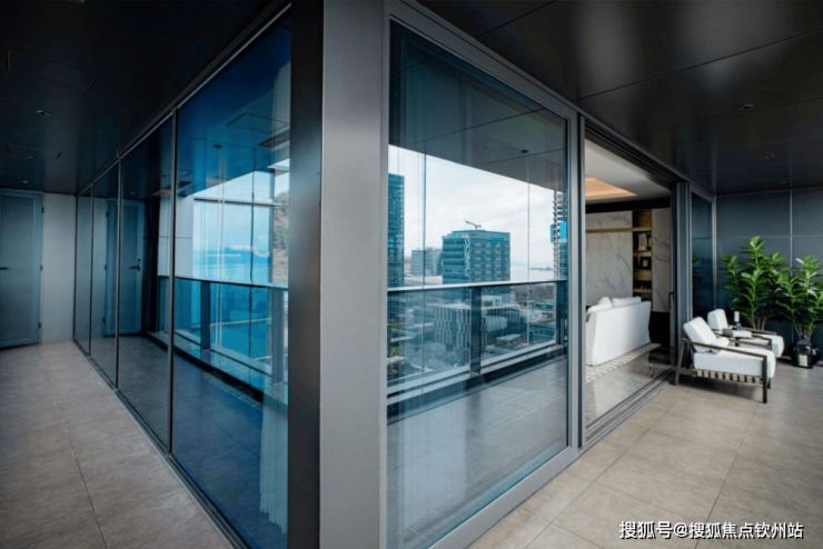 270°转角阳台包裹的阔朗横厅中,超大面积玻璃落地窗营造的IMAX级视野,将一线山海盛景悉数收藏。长约20米的L型阳台空间,将会客空间延伸至户外,或凭栏观景交谈,或迎风落座小酌,于太子湾之上感受致远的宁静,彰显另一种待客风度。