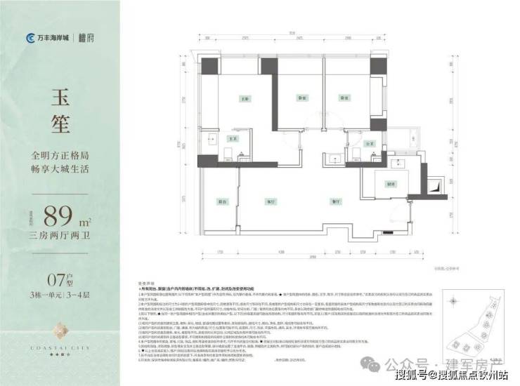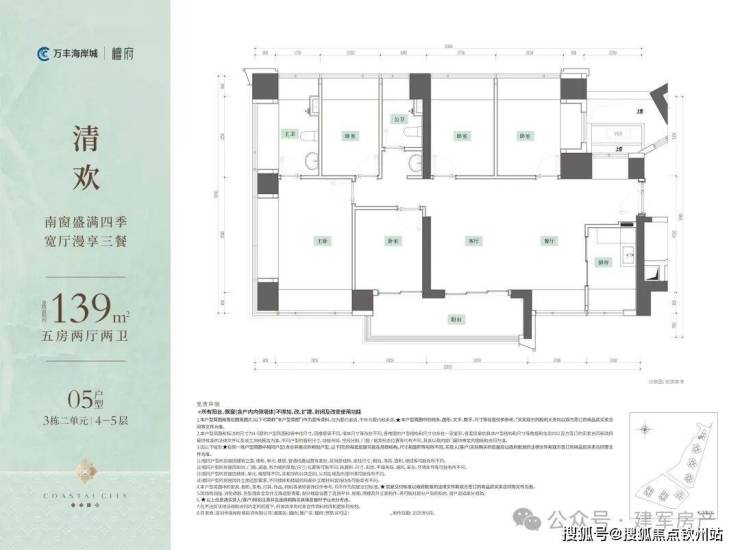 超16米东南采光面,阳台超7米宽;主卧进深4.5米,L型飘窗可270度景观。