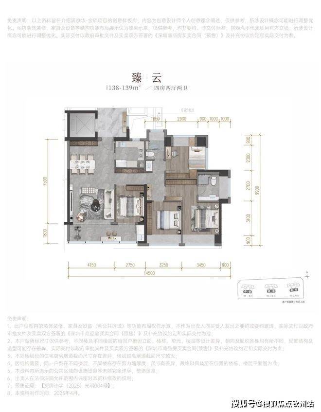 建面约138-139㎡四房两卫 专梯入户