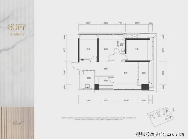 80㎡的3房2厅1卫,3/4栋04户型,设计的是竖厅格局,客厅4米开间+飘窗处,LDKB一体化设计,客厅双面采光,3个卧室分别做到了主卧12.18㎡/次卧9.16㎡/次卧8.1㎡(实测面积,去掉墙体),U型厨房,卫生间干湿分离,得房率约104.5%(包含赠送),东南朝向。