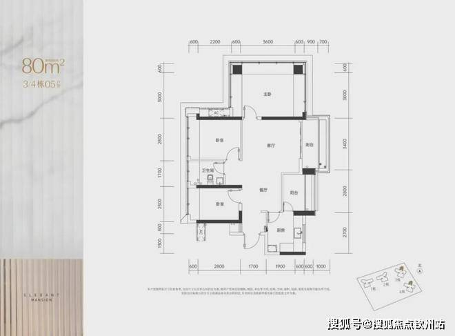 80㎡的3房2厅1卫,3/4栋05户型,设计的是横厅南北通透格局,客餐厅6.2米开间,LDKB一体化设计,四开间朝南,3个卧室分别做到了主卧16.43㎡/次卧9.07㎡/次卧6.7㎡(实测面积,去掉墙体),L型厨房,卫生间干湿分离,得房率约102.5%(包含赠送),阳台主朝东南朝向。