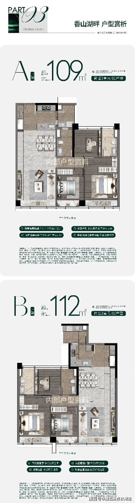 户型信息:主力户型为建面约 108-198㎡三至四房,全屋精装交付,标配唯宝、吉博力、博世、汉斯格雅等一线品牌,198㎡户型横向采光面达 8.9 米,中高层可俯瞰凤凰山脉与香山湖公园。其中 108㎡三房为 LDKG 一体化设计,动静分区;143㎡四房双阳台对流,主卧套房带步入式衣帽间;198㎡四房为大平层设计,客厅开间达 8.9 米,全套房布局。