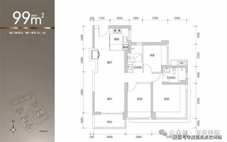 01户型:88平(南北通透)单价39900-40800,总价351-359万。
