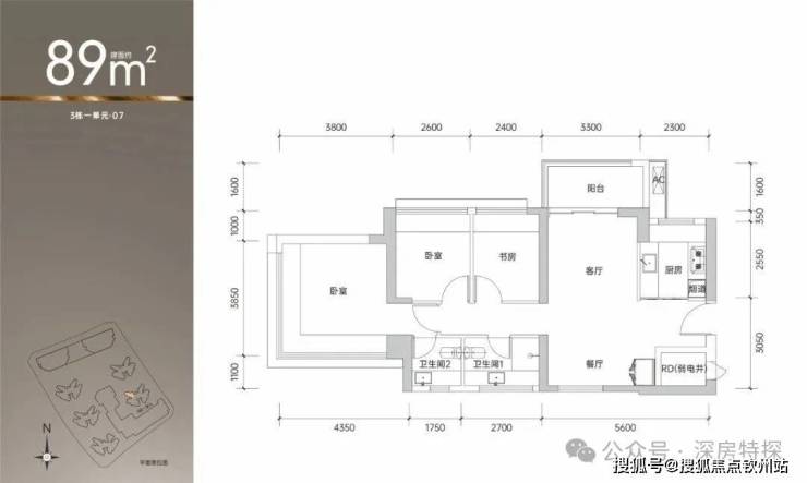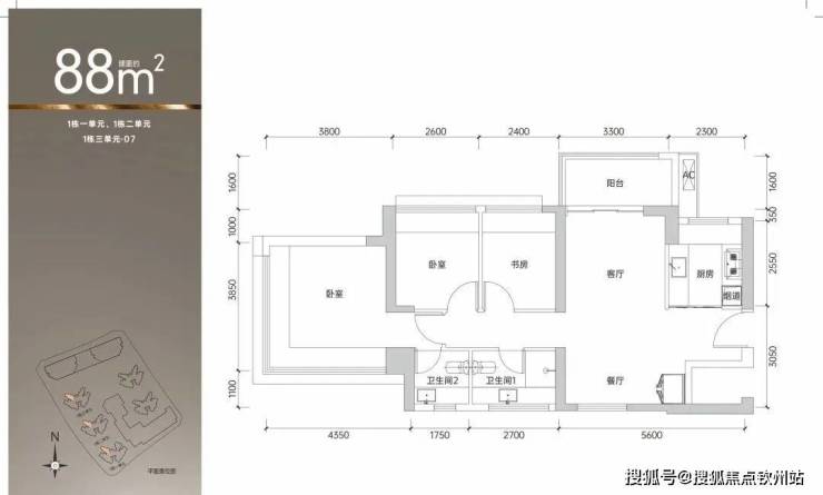 07户型:88平(南北通透)单价38200-39100,总价336-344万。