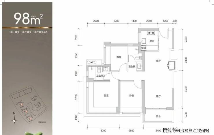 03户型:98平(东南向)单价39600-41100,总价389-404万。