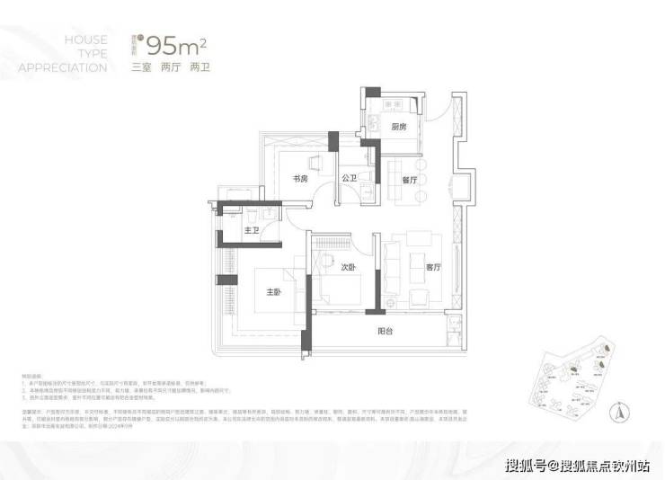 建面约95㎡3房2卫