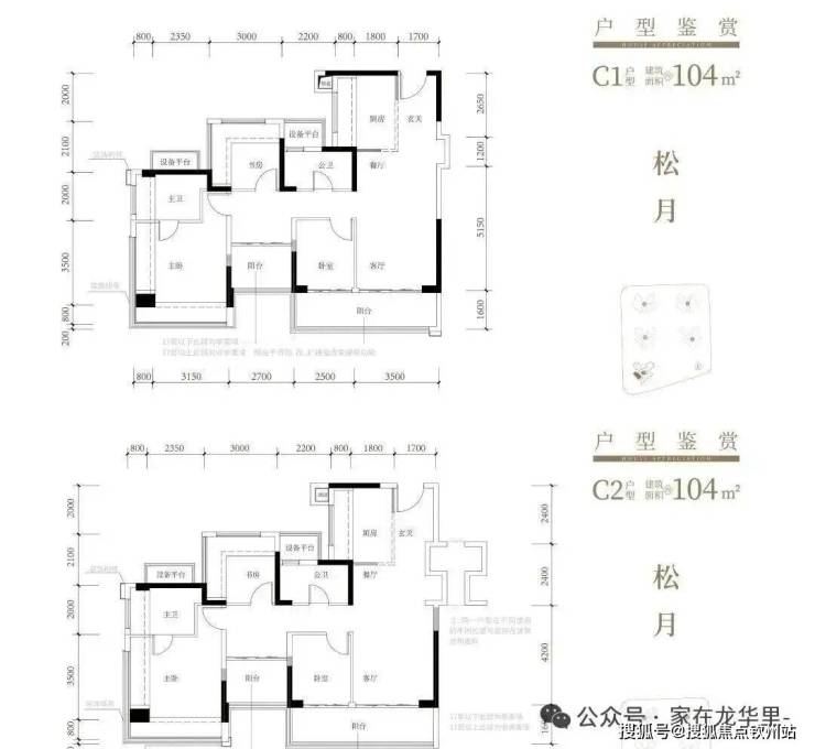 104㎡户型为3+1房2厅2卫设计,竖厅布局。该户型拥有约3.5米面宽的奢阔客厅,外连开间约6米的宽景阳台。