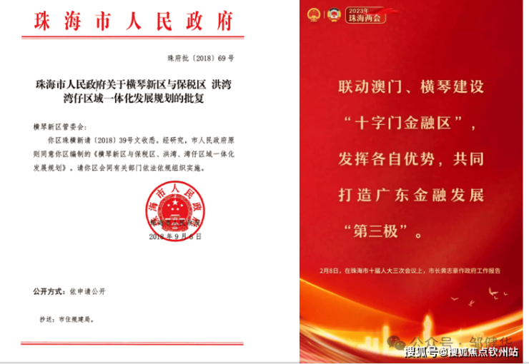 规划横琴一体化片区、双中心等位,南中心横琴金融岛定位商务中心,北中心十字门定位生活居住区,承载横琴居住人口,2022年规划十字门金融区,打造广东金融“第三极”,再次迎来发展机遇。