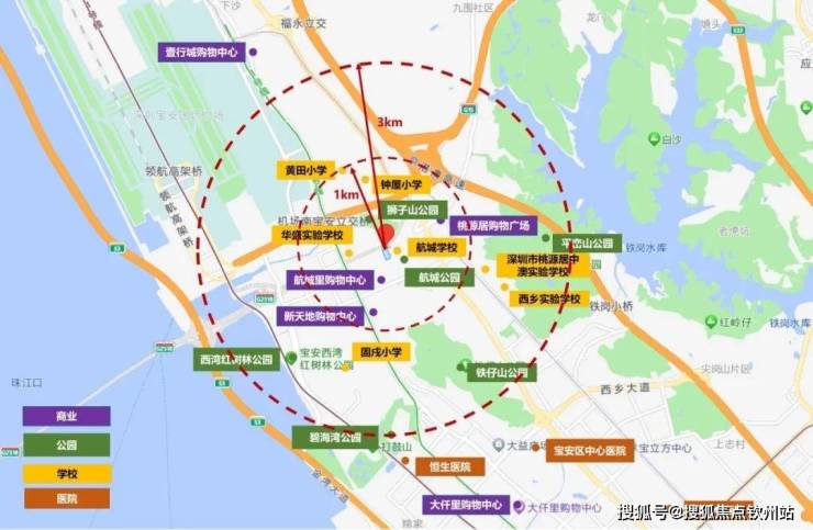 商业:3公里内航城里购物中心、福永天虹满足日常;远期宏发旧改规划大仟里,逛街不用跑远。