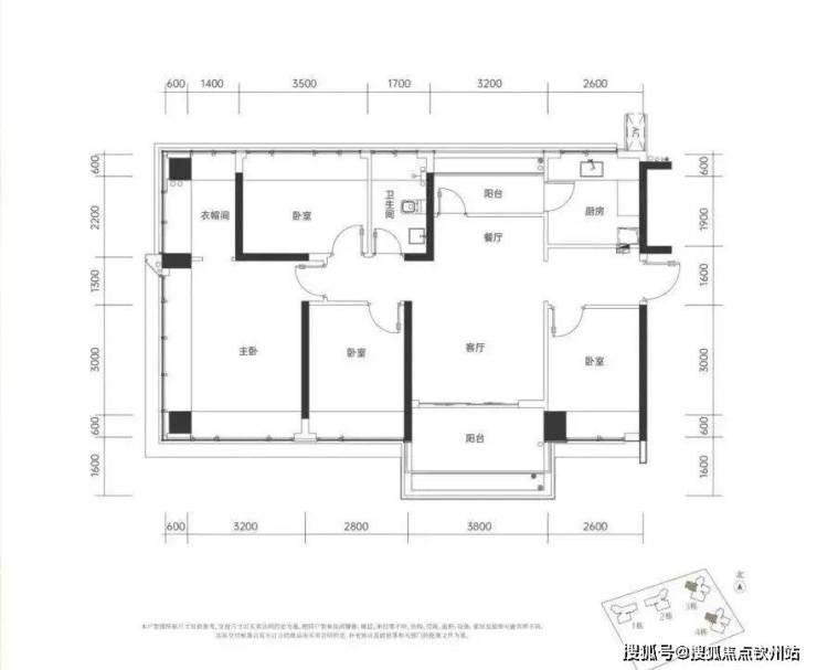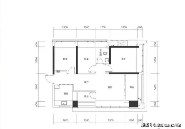 三房一卫:横厅设计,客餐厅开间6.2米,四米主卧带飘窗,得房率102.5%。小夫妻住宽敞,二胎家庭也不局促。