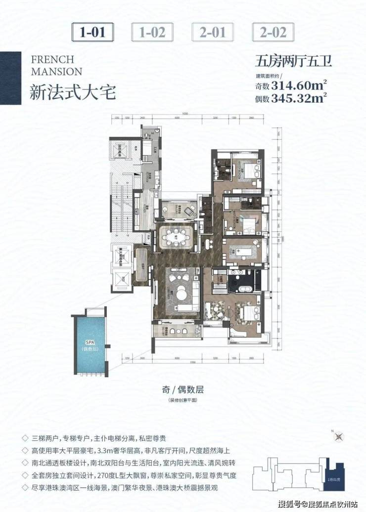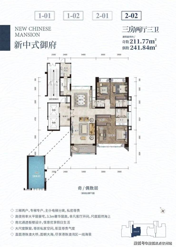 高使用率大平层豪宅,3.3米奢华层高,非凡客厅开间,尺度超然海上