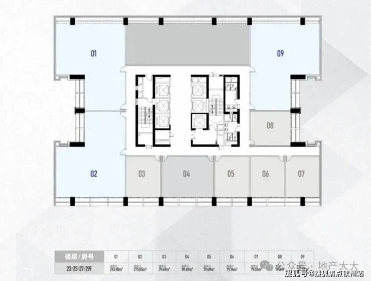 办公销售:23/25/27/29层平面图