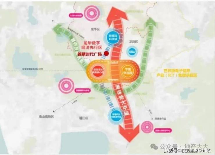 科创产业:北站商务核心区与坂田坂雪岗科技城双区交汇,集聚美团、深圳通、华为、富士康等龙头产业,形成超密集企业矩阵。