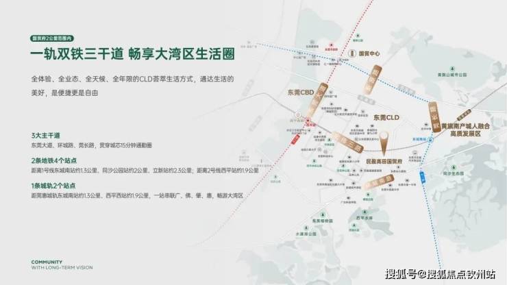 城市向南发展,东莞大道定位时代发展轴,经济上重点打造中央商务区(CBD),带动商贸全力驱动。民生上重点打造中央生活区(CLD),构建城芯品质人居腹地,CBD与CLD仅一路之隔,协同发展,形成东莞城心价值完整体。