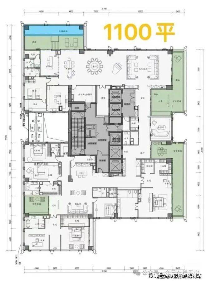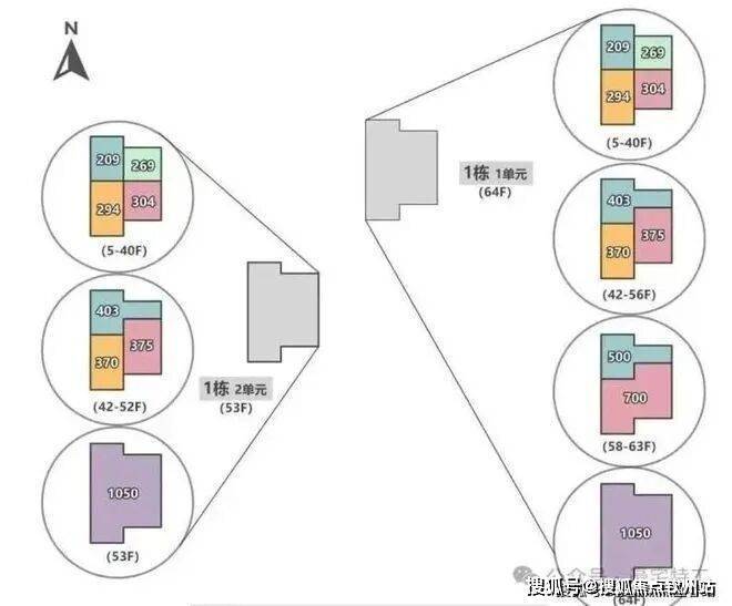 超高区(58层起,200米以上):约500-700㎡顶级大平层。