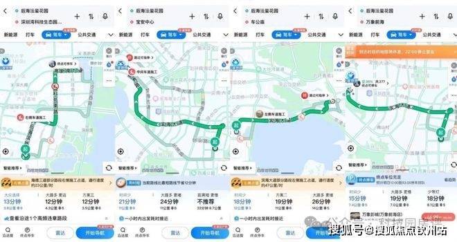 <自驾>:周边分布有多条高速/快速路及区域主干道,如西侧是后海大道,北侧是滨海大道、南侧是东滨隧道,去往南山科技园13分钟,去往前海、福田、宝中大概在15-20分钟。