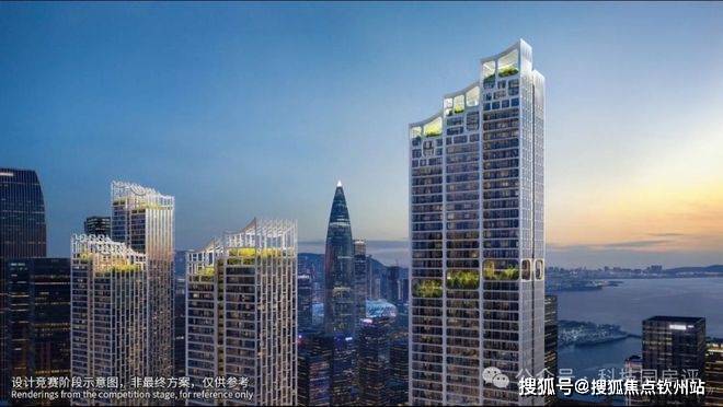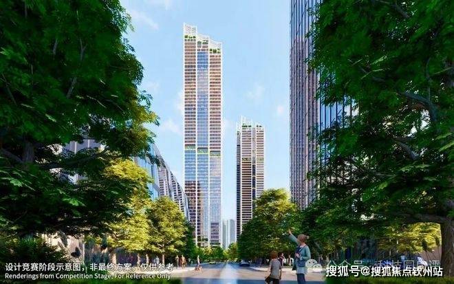 全玻璃幕墙+“竹韵”曲线立面:采用KPF建筑设计事务所方案,外立面以自然为灵感,通过垂直绿化与空中连廊系统形成“生态绿洲”,塔楼顶部规划直升机停机坪;