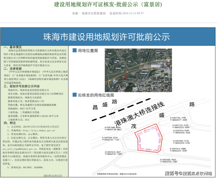 实际上,该项目已停工许久。自从富景居公司进入破产清算程序后,该项目一直未有实质性进展。直到去年12月,珠海市自然资源局发布公告称:珠海市富景居投资有限公司依据相关文件向我局申请办理位于拱北茂盛围片区情侣南路辅线南侧的珠海市富景居投资有限公司口岸湾畔项目的建设用地规划许可手续。现对该用地规划许可进行批前公示。