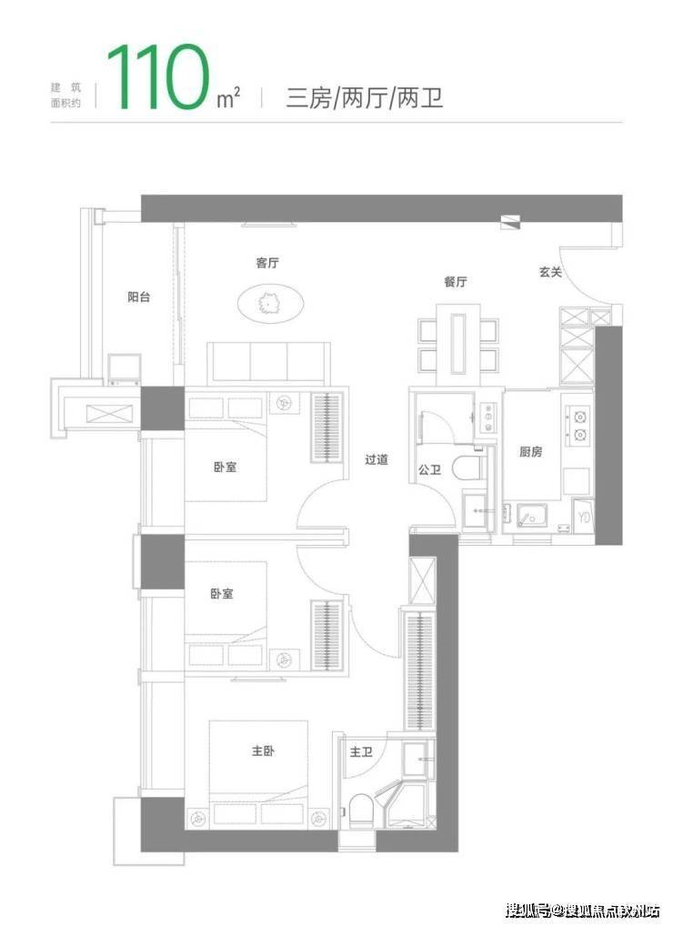 瞰景三房,卧室标配飘窗,观景阳台展开风景画卷|餐客一体化,连通阳台,畅享全家欢聚时刻|动静分区舒适化营造,休慎与家庭活动互不干扰|主卧私享化,独立卫浴、衣帽间,自在天地一隅