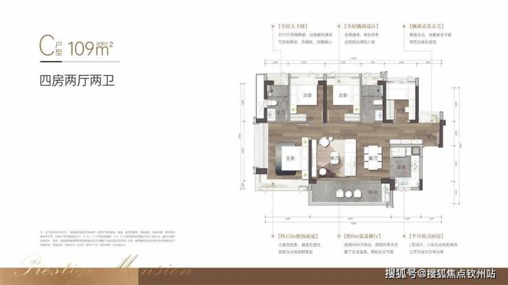 【产品面积】建面约108㎡/109㎡/138㎡~143m²海幕纯四房;